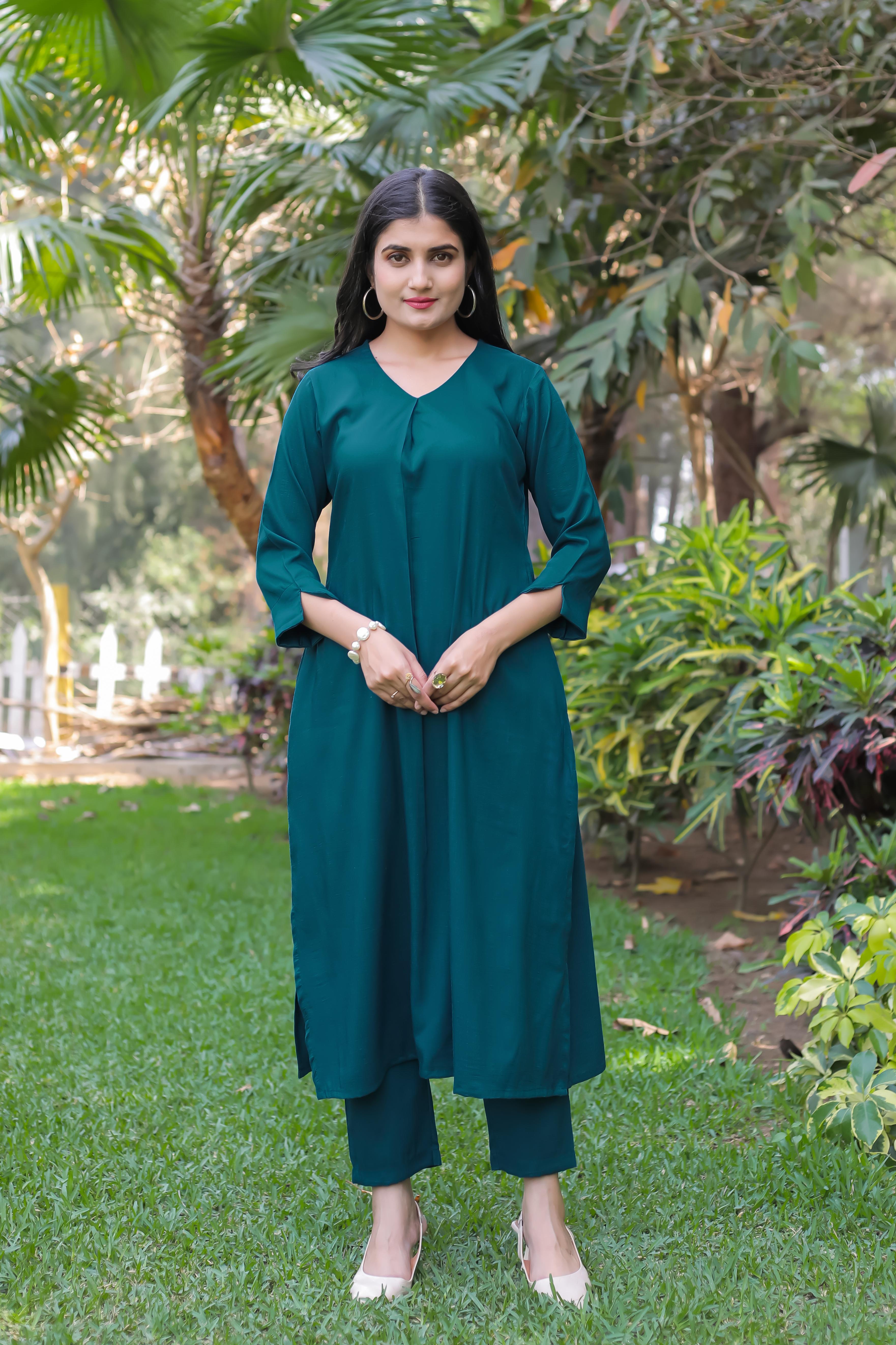 Care Instructions: To preserve the pristine condition of your Teal Tranquility Modal V-Neckline Designer Co-ord Set, we recommend gentle hand washing only. Please note that slight variations in color may occur, adding to the unique allure of this ensemble.