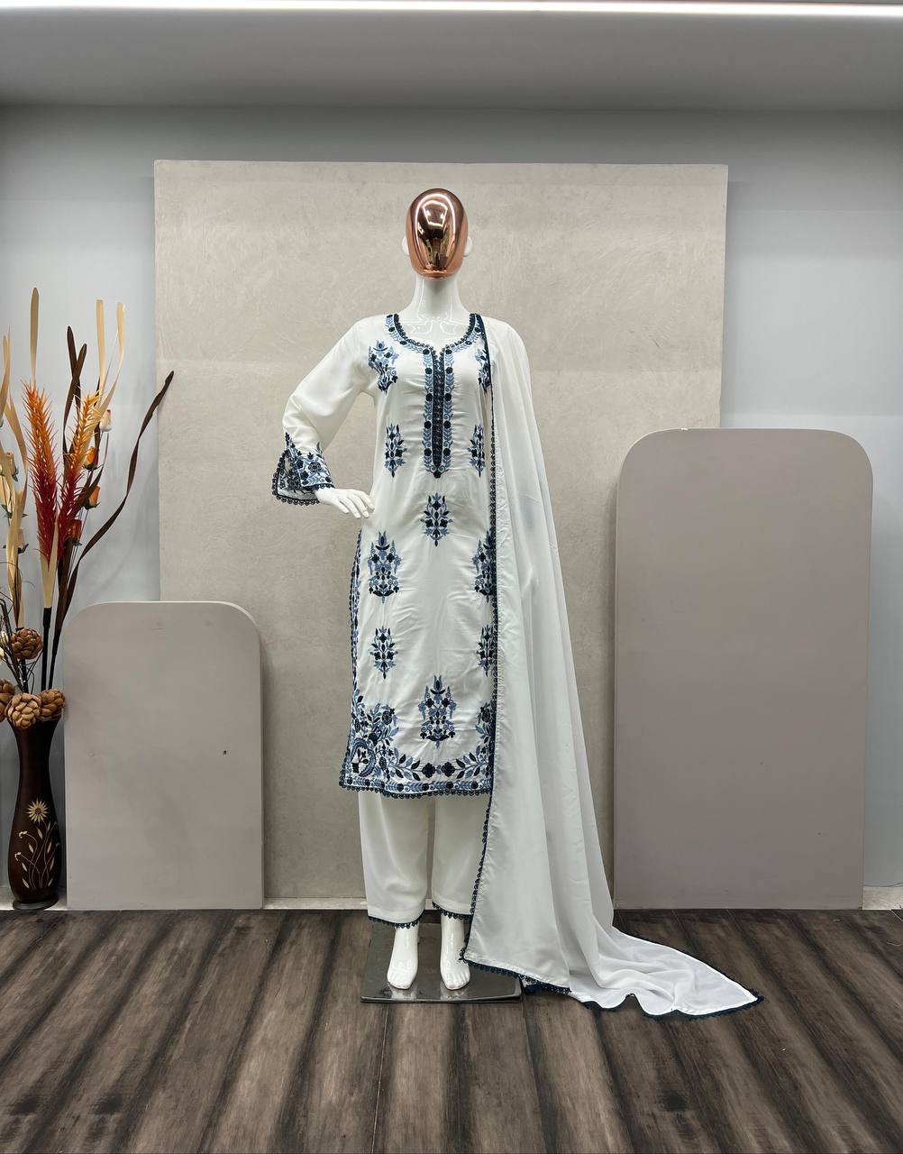 Dupatta: Accompanying the ensemble is a 2.2-meter dupatta, providing versatility in styling options. Whether draped elegantly over the shoulders or styled creatively, the dupatta adds a touch of charm to the outfit.